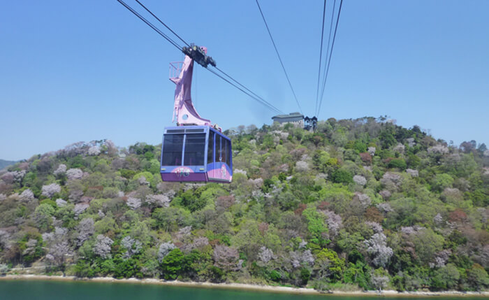 搭上纜車後,絕不能錯過來回途中從車廂上放眼望去的櫻花或紅葉景觀。